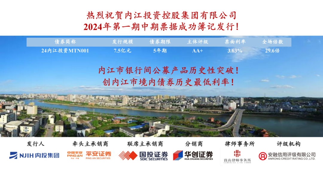 近日,内江投资控股集团有限公司2024年度第一期中期票据获得成功簿记发行7.5亿元。致高律师事务所高级合伙人黄生富律师、洪新律师、程岭梅律师、高月维律师等为发行人提供本次中期票据发行的专项法律服务,在本次中期票据发行过程中,致高律师事务所的律师团队充分发挥了专业优势,为发行人提供了全方位的法律支持,充分展现出致高律师在资本市场法律服务领域的专业与高效,致高律师将继续以勤勉尽职的工作态度,为委托人提供专业高效的法律服务。